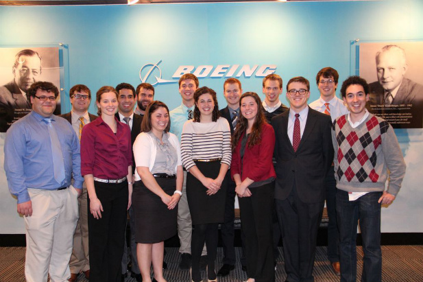 On January 23, 2013, Boeing honored the iScholars (innovation scholars) from Parks College of Engineering, Aviation and Technology for their engineering leadership and entrepreneurial pursuits. The event held at Boeing, kicked off with a presentation by the vice president of marketing and a discussion panel that included senior entrepreneurial leaders from Boeing. A reception where iScholars were able to have one-on-one time with the Boeing employees concluded the evening. “The Boeing event was a successful unforgettable experience,” said iScholar Brenden Graczak. “Getting to talk to thought leaders that championed and implemented innovation in Boeing motivated me to want to be in that environment when I am a professional.” iScholars, a student-led initiative, engage in different roles and activities such as community outreach, innovation leadership and design projects. Students are required to work 10 hours per week to promote the entrepreneurial mindset across campus. The iScholars program is funded by the Kern Entrepreneurship Education Network (KEEN). KEEN is a collaboration of 19 universities around the U.S. that strive to instill an entrepreneurial mindset in undergraduate engineering students. KEEN’s mission is to graduate engineers who will contribute to business success; and in doing so, transform the American workforce. For more information on the iScholars Program, visit parks.slu.edu/ischolars